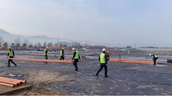 年三十前,經(jīng)過各參建單位堅持不懈的努力,準備區(qū)、緩沖區(qū)、隔離區(qū)混凝土地坪及道路搶澆筑完成,污水處理設備基礎混凝土澆筑完成,30余臺機械設備順利撤場。