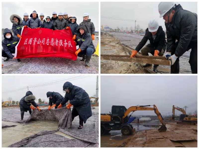 2月2日,農(nóng)歷大年初二,雨雪交加。區(qū)國資集團(tuán)黨員突擊隊(duì)、志愿者服務(wù)隊(duì)前往疫情防控隔離點(diǎn)協(xié)助搬運(yùn)材料、清理廢渣、鋪設(shè)防凍布等,項(xiàng)目現(xiàn)場(chǎng)一派繁忙景象。下午項(xiàng)目建設(shè)組開始布置班組,明日正式開始準(zhǔn)備區(qū)折疊房吊裝施工,確保春節(jié)期間施工組織有條不紊,有序推進(jìn)。