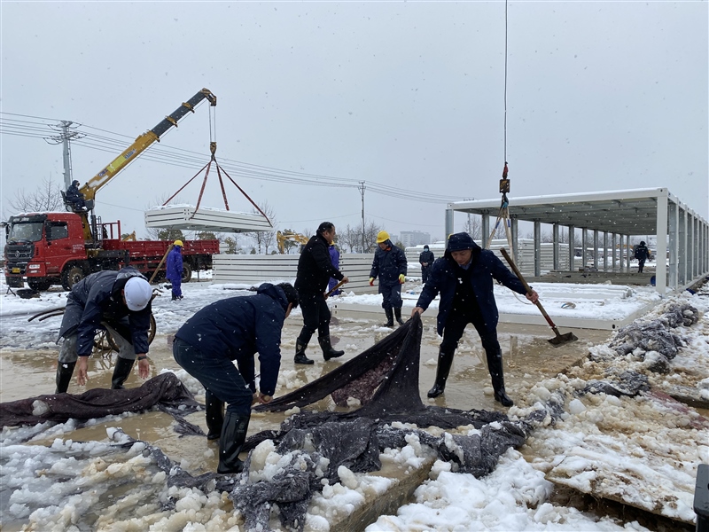 2月7日(農(nóng)歷正月初七),冬雪紛紛、寒風(fēng)瑟瑟,惡劣的天氣并未阻擋隔離點(diǎn)項(xiàng)目各參建單位的激情和干勁。中午12時(shí)40許,監(jiān)理單位在現(xiàn)場(chǎng)開展巡查,鰲峰建設(shè)在項(xiàng)目部組織施工會(huì)商工作。下午,國(guó)資集團(tuán)黨員突擊隊(duì)、志愿服務(wù)隊(duì)主動(dòng)請(qǐng)“戰(zhàn)”,步履匆匆赴現(xiàn)場(chǎng)鏟雪除冰。副區(qū)長(zhǎng)王劍赴現(xiàn)場(chǎng)督查指導(dǎo)工作并對(duì)項(xiàng)目進(jìn)度表示肯定。