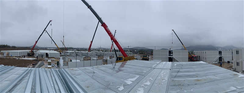 隔離點項目建設(shè)離完工僅剩十余天,自1月21日開工以來,各參建方努力調(diào)配一切可用的人力、物資,在全力保障項目建設(shè)的同時,努力節(jié)約采購成本。今日,施工現(xiàn)場近300人作業(yè),變壓器已安裝完成,打包房、板房、折疊房及水電設(shè)備等安裝進(jìn)展迅速。