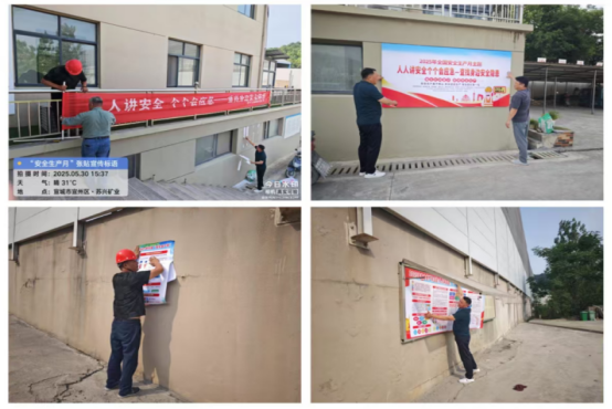 二是宣傳引導(dǎo),營造濃厚氛圍。5月30日下午,蘇興礦業(yè)及云南建投駐礦項目部充分利用宣傳欄、橫幅、海報等形式營造活動氛圍,圍繞“人人講安全,個個會應(yīng)急—查找身邊安全隱患”的活動主題,制作專題宣傳橫幅2條、安全宣傳海報35張,張貼于入礦道路、磅房、一破喂料口、職工食堂等醒目位置。