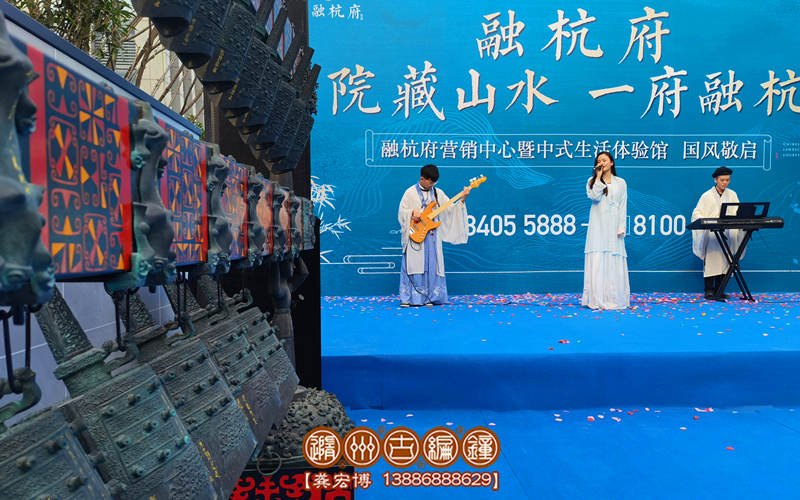 “院藏山水一府融杭”,隨州古編鐘公司一套28件曾侯乙青銅編鐘與2020年12月赴浙江紹興融杭府展覽演出。
